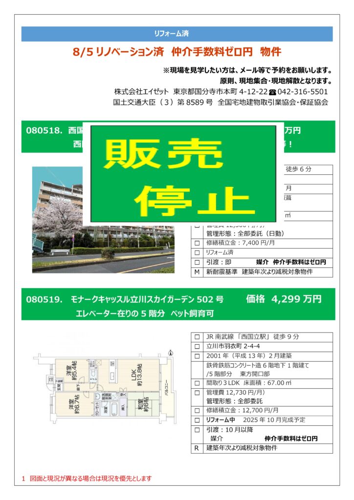 急遽、成約になる物件もございますので、LINE・メール等からの連絡をお願いします。