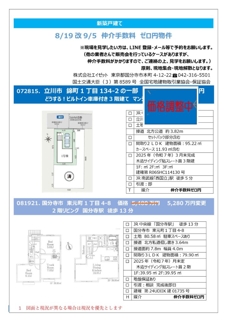 価格調整済 立川市錦町1丁目 3階建て 立川駅徒歩10分→9/12変更 5,798万円