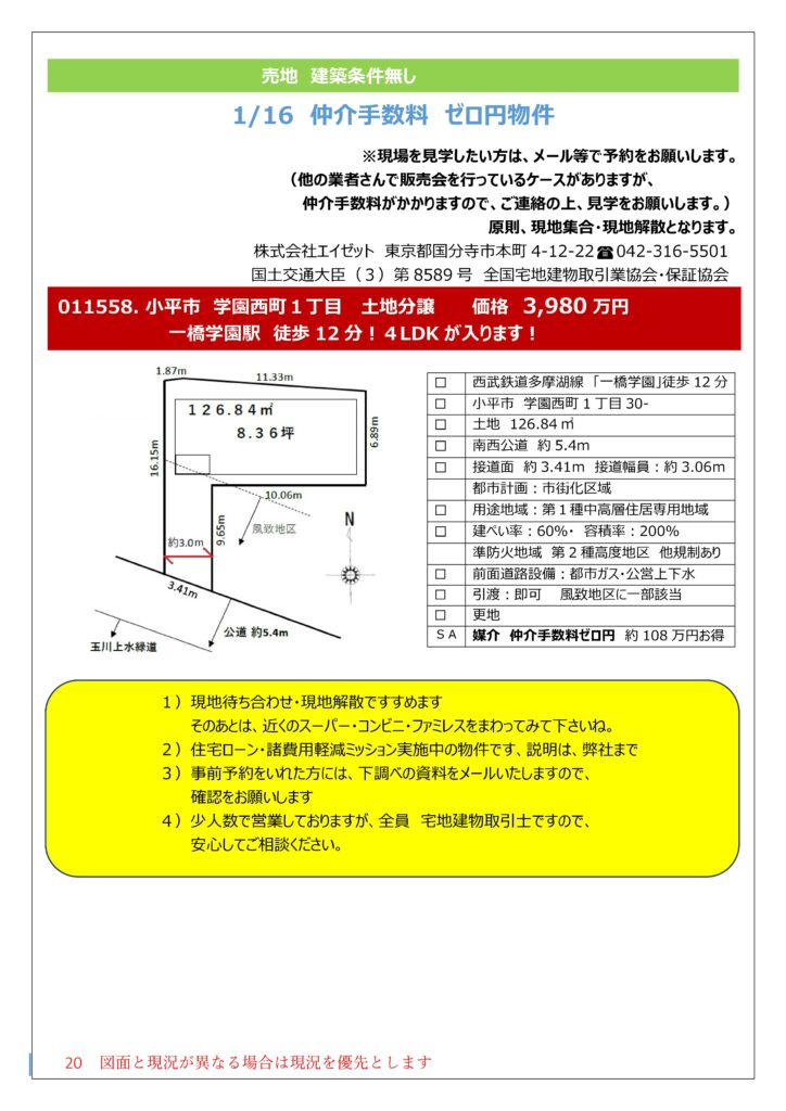 下調べの資料は、当社よりメールいたしまします。(案内図・ハザードマップなど)